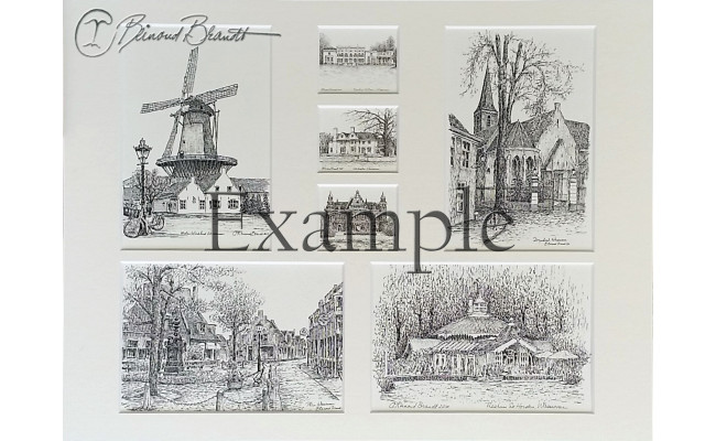 Kies zelf de zeven tekeningen uit die u in deze lijst ingelijst wilt hebben. Zo stelt u zelf een persoonlijke lijst samen.