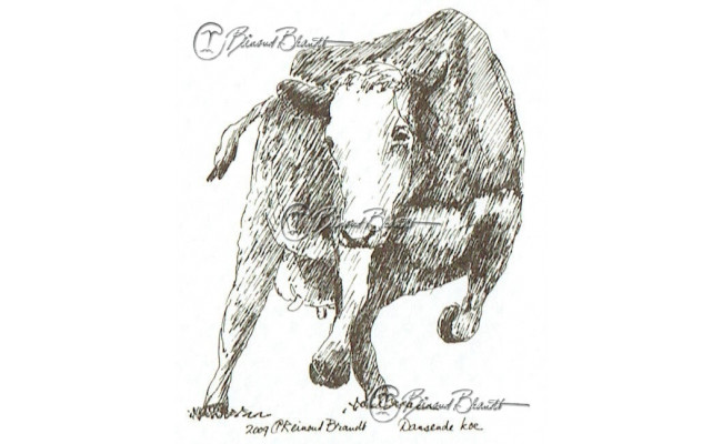 Deze tekening is ingelijst verkrijgbaar met glas en klemmen of in een bruine, zwarte of wortelnoot fineren lijst.