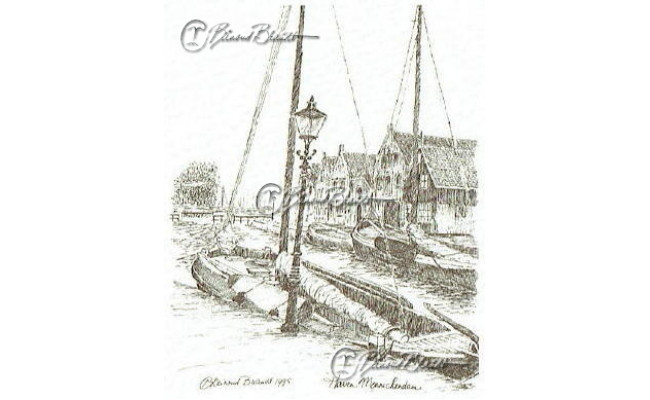 Deze tekening is ingelijst verkrijgbaar met glas en klemmen of in een bruine, zwarte of wortelnoot fineren lijst.