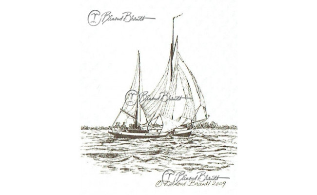 Deze tekening is ingelijst verkrijgbaar met glas en klemmen of in een bruine, zwarte of wortelnoot fineren lijst.