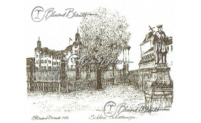 Deze miniatuur pentekening wordt gemonteerd in een uitgestanst passe-partout van 10x10 cm en wordt geleverd in een lijst naar keuze.