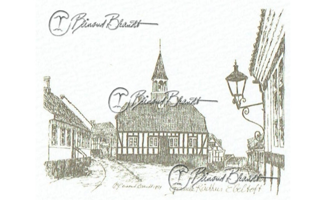 Deze tekening is ingelijst verkrijgbaar met glas en klemmen of in een bruine, zwarte of wortelnoot fineren lijst.