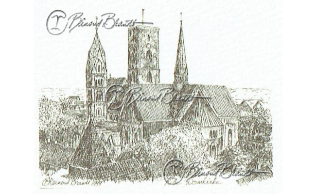 Deze tekening is ingelijst verkrijgbaar met glas en klemmen of in een bruine, zwarte of wortelnoot fineren lijst.