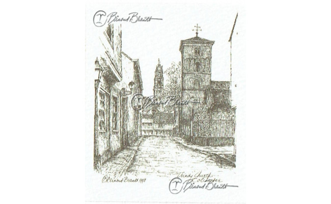 Deze miniatuur pentekening wordt gemonteerd in een uitgestanst passe-partout van 10x10 cm en wordt geleverd in een lijst naar keuze.