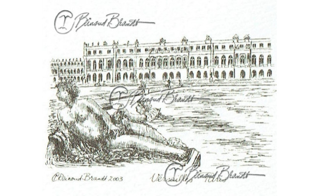 Deze miniatuur pentekening wordt gemonteerd in een uitgestanst passe-partout van 10x10 cm en wordt geleverd in een lijst naar keuze.