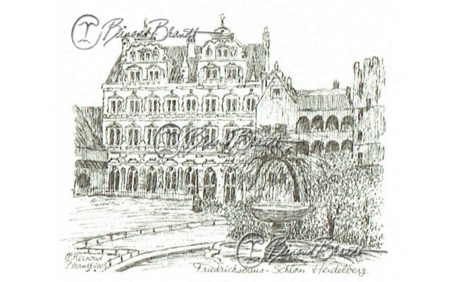Deze tekening is ingelijst verkrijgbaar met glas en klemmen of in een bruine, zwarte of wortelnoot fineren lijst.