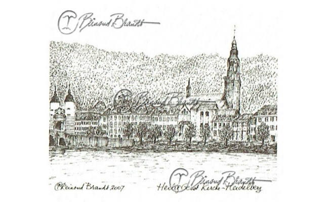 Deze tekening is ingelijst verkrijgbaar met glas en klemmen of in een bruine, zwarte of wortelnoot fineren lijst.
