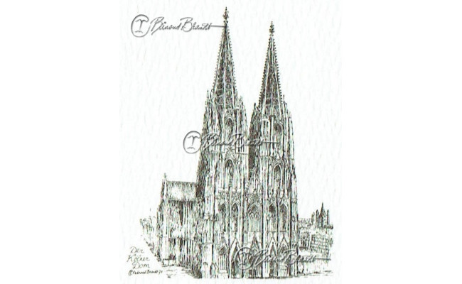 Deze tekening is ingelijst verkrijgbaar met glas en klemmen of in een bruine, zwarte of wortelnoot fineren lijst.