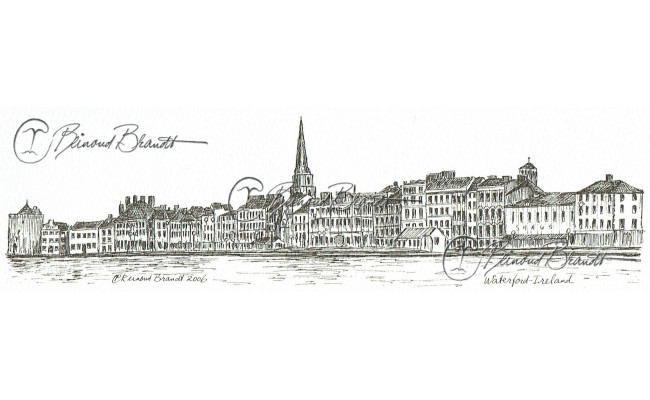 Deze panoramatekening wordt geleverd in een uitgesneden passe-partout van 10x25 cm, in een lijst naar keuze.