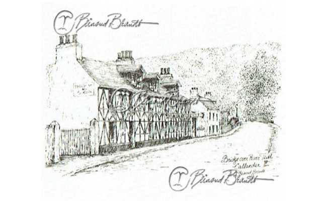 Deze tekening is ingelijst verkrijgbaar met glas en klemmen of in een bruine, zwarte of wortelnoot fineren lijst.