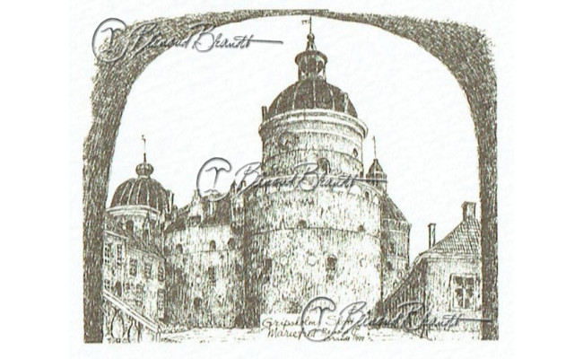 Deze miniatuur pentekening wordt gemonteerd in een uitgestanst passe-partout van 10x10 cm en wordt geleverd in een lijst naar keuze.