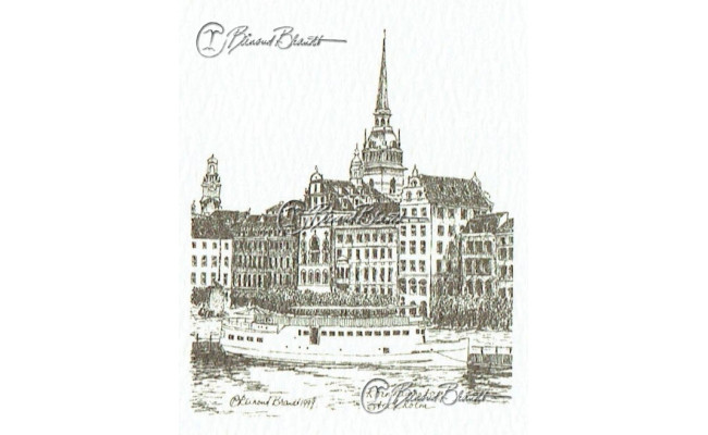Deze miniatuur pentekening wordt gemonteerd in een uitgestanst passe-partout van 10x10 cm en wordt geleverd in een lijst naar keuze.
