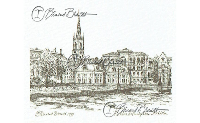 Deze miniatuur pentekening wordt gemonteerd in een uitgestanst passe-partout van 10x10 cm en wordt geleverd in een lijst naar keuze.