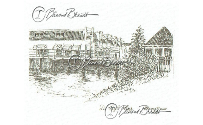 Deze miniatuur pentekening wordt gemonteerd in een uitgestanst passe-partout van 10x10 cm en wordt geleverd in een lijst naar keuze.