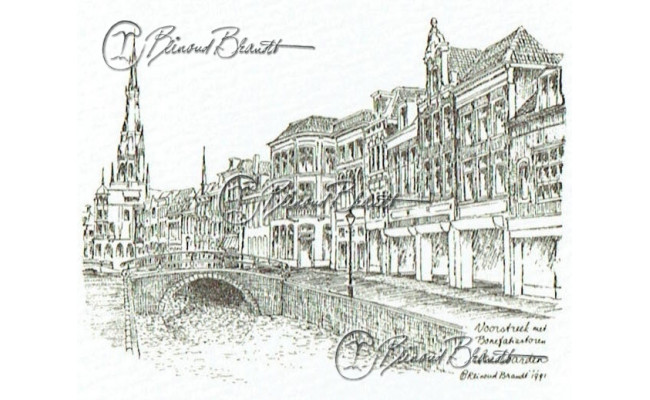 Deze tekening is ingelijst verkrijgbaar met glas en klemmen of in een bruine, zwarte of wortelnoot fineren lijst.