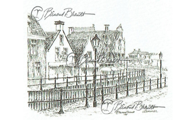 Deze tekening is ingelijst verkrijgbaar met glas en klemmen of in een bruine, zwarte of wortelnoot fineren lijst.