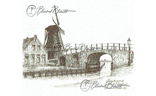 Deze miniatuur pentekening wordt gemonteerd in een uitgestanst passe-partout van 10x10 cm en wordt geleverd in een lijst naar keuze.