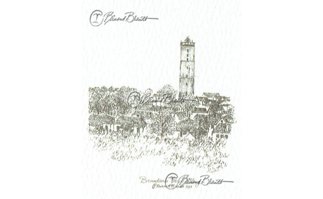 Deze miniatuur pentekening wordt gemonteerd in een uitgestanst passe-partout van 10x10 cm en wordt geleverd in een lijst naar keuze.