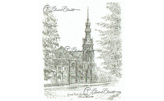 Deze tekening is ingelijst verkrijgbaar met glas en klemmen of in een bruine, zwarte of wortelnoot fineren lijst.