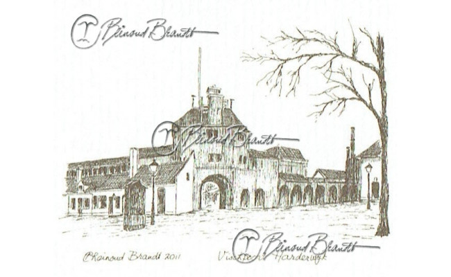 Deze tekening is ingelijst verkrijgbaar met glas en klemmen of in een bruine, zwarte of wortelnoot fineren lijst.