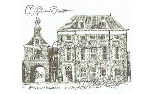 Deze tekening is ingelijst verkrijgbaar met glas en klemmen of in een bruine, zwarte of wortelnoot fineren lijst.