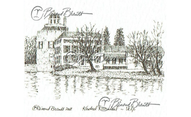 Deze miniatuur pentekening wordt gemonteerd in een uitgestanst passe-partout van 10x10 cm en wordt geleverd in een lijst naar keuze.