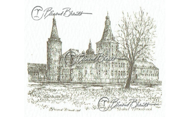 Deze miniatuur pentekening wordt gemonteerd in een uitgestanst passe-partout van 10x10 cm en wordt geleverd in een lijst naar keuze.