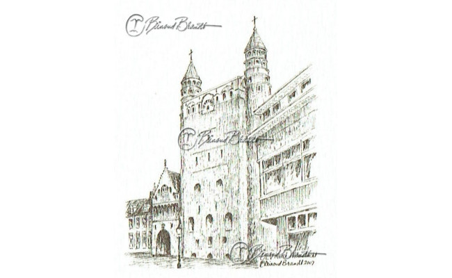 Deze tekening is ingelijst verkrijgbaar met glas en klemmen of in een bruine, zwarte of wortelnoot fineren lijst.