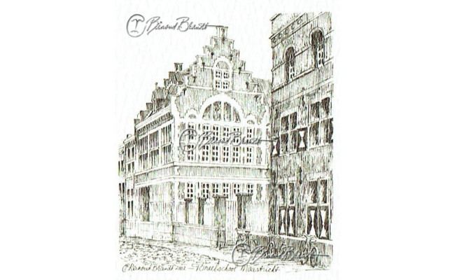 Deze miniatuur pentekening wordt gemonteerd in een uitgestanst passe-partout van 10x10 cm en wordt geleverd in een lijst naar keuze.