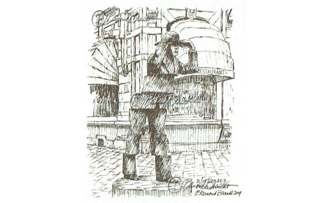 Deze tekening is ingelijst verkrijgbaar met glas en klemmen of in een bruine, zwarte of wortelnoot fineren lijst.