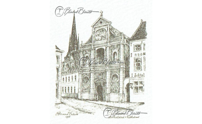 Deze miniatuur pentekening wordt gemonteerd in een uitgestanst passe-partout van 10x10 cm en wordt geleverd in een lijst naar keuze.