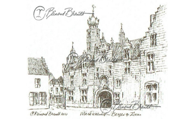 Deze miniatuur pentekening wordt gemonteerd in een uitgestanst passe-partout van 10x10 cm en wordt geleverd in een lijst naar keuze.