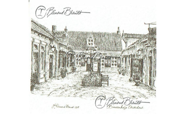Deze miniatuur pentekening wordt gemonteerd in een uitgestanst passe-partout van 10x10 cm en wordt geleverd in een lijst naar keuze.