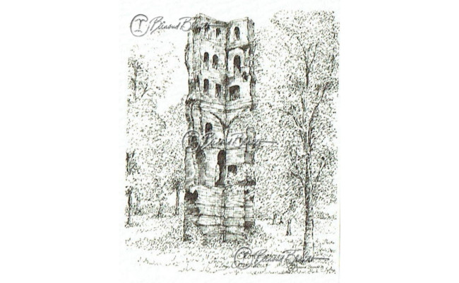 Deze miniatuur pentekening wordt gemonteerd in een uitgestanst passe-partout van 10x10 cm en wordt geleverd in een lijst naar keuze.