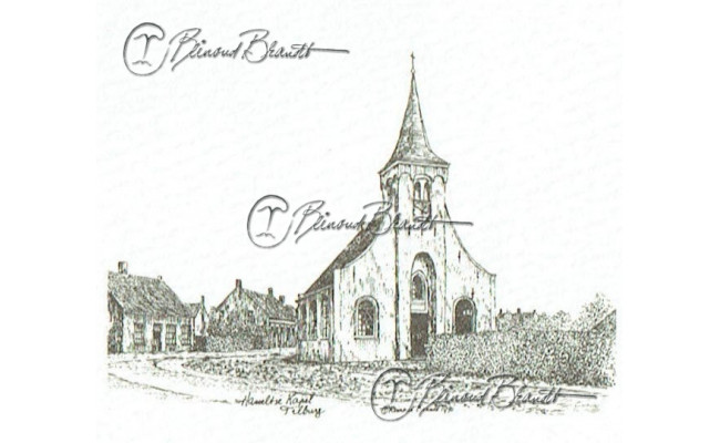 Deze miniatuur pentekening wordt gemonteerd in een uitgestanst passe-partout van 10x10 cm en wordt geleverd in een lijst naar keuze.