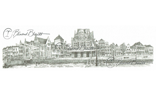 Deze panoramatekening wordt geleverd in een uitgesneden passe-partout van 10x25 cm, in een lijst naar keuze.