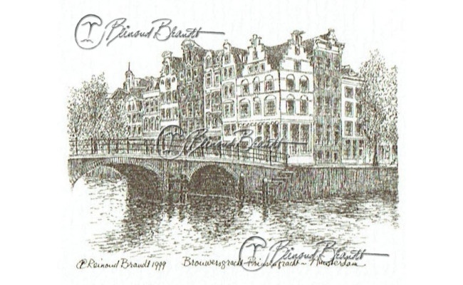 Deze miniatuur pentekening wordt gemonteerd in een uitgestanst passe-partout van 10x10 cm en wordt geleverd in een lijst naar keuze.