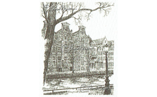 Deze miniatuur pentekening wordt gemonteerd in een uitgestanst passe-partout van 10x10 cm en wordt geleverd in een lijst naar keuze.