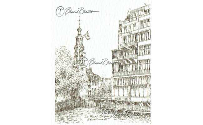 Deze miniatuur pentekening wordt gemonteerd in een uitgestanst passe-partout van 10x10 cm en wordt geleverd in een lijst naar keuze.