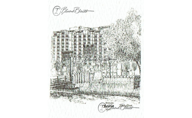 Deze miniatuur pentekening wordt gemonteerd in een uitgestanst passe-partout van 10x10 cm en wordt geleverd in een lijst naar keuze.