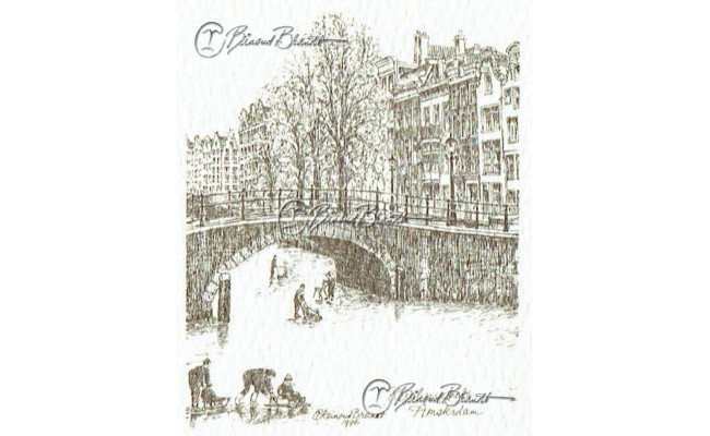Deze miniatuur pentekening wordt gemonteerd in een uitgestanst passe-partout van 10x10 cm en wordt geleverd in een lijst naar keuze.