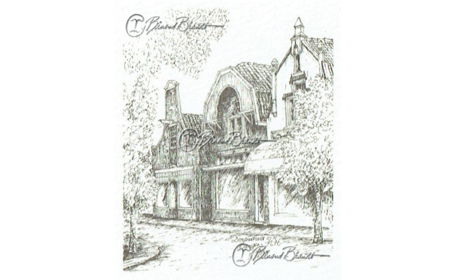 Deze tekening is ingelijst verkrijgbaar met glas en klemmen of in een bruine, zwarte of wortelnoot fineren lijst.