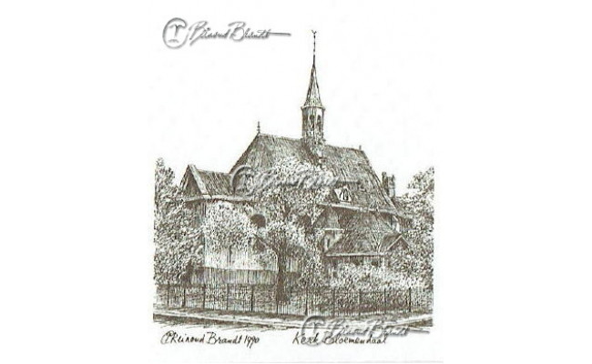 Deze miniatuur pentekening wordt gemonteerd in een uitgestanst passe-partout van 10x10 cm en wordt geleverd in een lijst naar keuze.