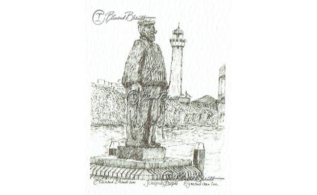 Deze tekening is ingelijst verkrijgbaar met glas en klemmen of in een bruine, zwarte of wortelnoot fineren lijst.