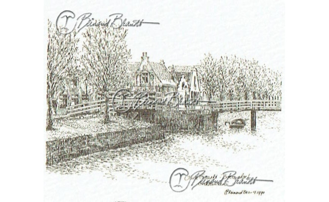 Deze tekening is ingelijst verkrijgbaar met glas en klemmen of in een bruine, zwarte of wortelnoot fineren lijst.