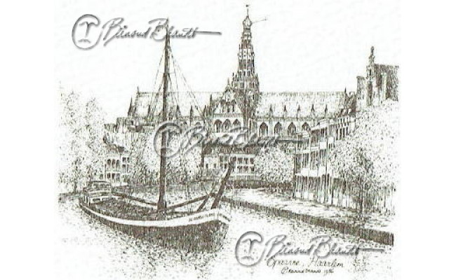 Deze tekening is ingelijst verkrijgbaar met glas en klemmen of in een bruine, zwarte of wortelnoot fineren lijst.