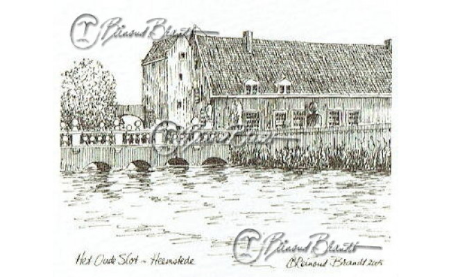 Deze miniatuur pentekening wordt gemonteerd in een uitgestanst passe-partout van 10x10 cm en wordt geleverd in een lijst naar keuze.