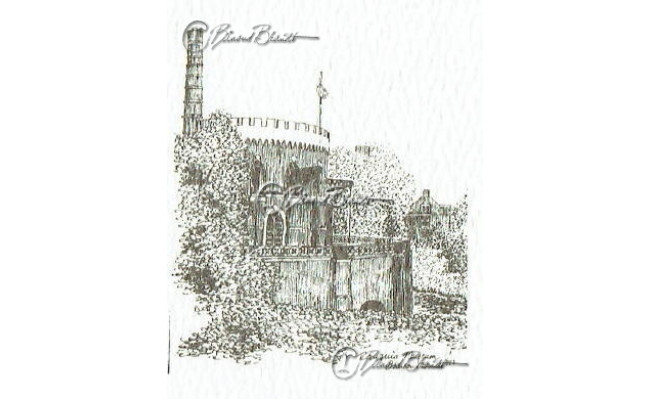 Deze miniatuur pentekening wordt gemonteerd in een uitgestanst passe-partout van 10x10 cm en wordt geleverd in een lijst naar keuze.