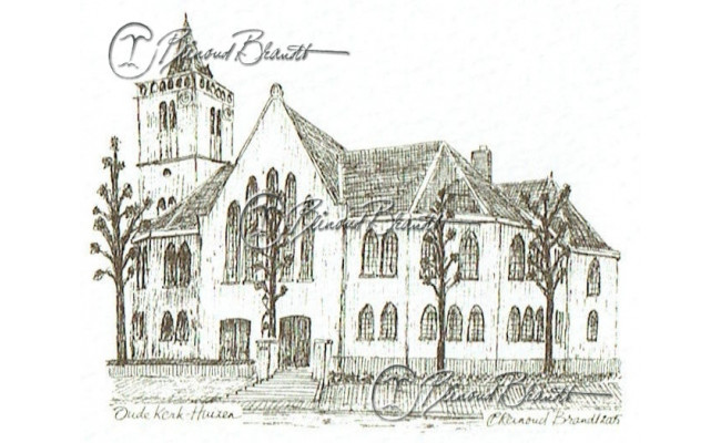 Deze tekening is ingelijst verkrijgbaar met glas en klemmen of in een bruine, zwarte of wortelnoot fineren lijst.