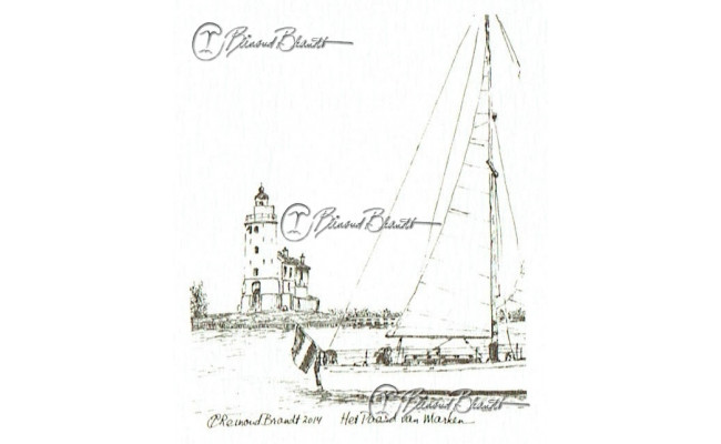 Deze tekening is ingelijst verkrijgbaar met glas en klemmen of in een bruine, zwarte of wortelnoot fineren lijst.